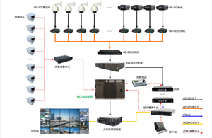 信號(hào)控制:HD-SDI數(shù)字高清矩陣、綜合管理平臺(tái)、外置報(bào)警單元、主控鍵盤(pán)、客戶端