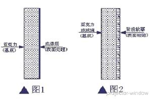 漫反射屏幕的技術(shù)起源比較早,但是,前期發(fā)展比較慢,近幾年隨著應(yīng)用范圍加大,發(fā)展迅速,主要特點是:視角大、增益低、對環(huán)境光攝影能力比較強,應(yīng)用范圍廣闊。 1)、漫反射屏幕的技術(shù)之一是直接對亞克力表面進行處理制作而成。圖1示, 屏幕視角和清晰度都不理想,太陽效應(yīng)也比較嚴(yán)重。主要為國內(nèi)生產(chǎn)廠家的制造方式。 2)、漫反射屏幕的技術(shù)之二是用亞克力、玻璃等透明體材料作為基底, 在其表面粘貼背投軟質(zhì)屏幕制作而成。圖2示,該種技術(shù)已經(jīng)成熟應(yīng)用在各種行業(yè),上下左右視角都是180度,無太陽效應(yīng),同時屏幕的尺寸比較大。