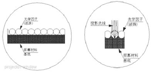 屏幕的通用技術(shù):屏幕的技術(shù)關(guān)鍵是屏幕表面的材料解決光線的散射( Scatter )、反射( Reflect) 、和折射(Refract) ,正確的解決和提高相應(yīng)的三項參數(shù),是屏幕技術(shù)的主題。 下面將從正投屏幕、背投屏幕兩大類進行屏幕技術(shù)和種類的說明。 1 軟質(zhì)屏幕技術(shù)和種類 不論是何種應(yīng)用方式,正投軟質(zhì)屏幕其主要技術(shù)都是在一種不透光的布料上表面進行各種不同材料的噴涂技術(shù),而表面材料中應(yīng)用了不同的光學(xué)材料,光學(xué)材料中光學(xué)因子(國內(nèi)通俗的講為玻珠)的多少和質(zhì)量好壞,決定了屏幕的視角和表面增益以及其他重要參數(shù)。下圖1.3.1a/b,反映了理想狀態(tài)下玻珠對投影光線優(yōu)化作用。 表面噴涂光學(xué)因子的穩(wěn)定性和均勻性,影響著屏幕畫面的質(zhì)量。