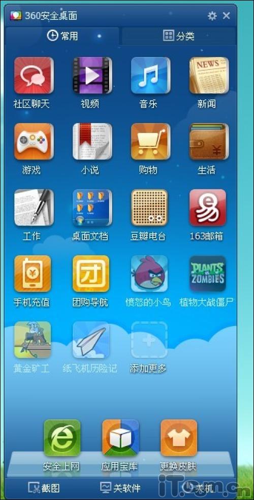 所謂360安全桌面就是整合了“社區聊天、視頻、音樂、新聞、游戲、小說、購物”等日常必備軟件的一款桌面管理軟件。