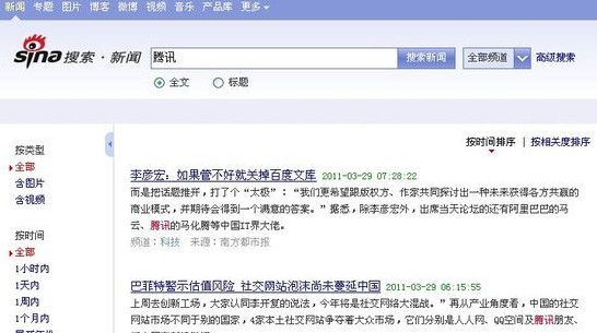 從去年將它的中國大陸服務(wù)撤離至香港以來,谷歌在中國搜索市場份額一路下滑,而谷歌在中國的主要競爭對(duì)手、中國第一大搜索服務(wù)供應(yīng)商百度的市場份額一直在增長。新浪營銷中心副總經(jīng)理劉奇周一表示,新浪門戶網(wǎng)上的這一變化是因?yàn)樾吕伺c谷歌合同到期。新浪網(wǎng)首頁上的搜索框現(xiàn)在使用自己的搜索技術(shù),搜索范圍按照新聞、博客和音樂等進(jìn)行分類。