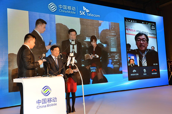 成都高端網(wǎng)站建設(shè)—在中國移動(dòng)-SK Telecom 4G高清音視頻互通儀式上,中國移動(dòng)通信集團(tuán)公司李正茂副總裁點(diǎn)擊4G手機(jī),現(xiàn)場(chǎng)即刻傳出來自韓國首爾的聲音,兩端的視頻通話畫面通過WiMo無線同屏共享技術(shù),第一時(shí)間同步在巨大的LED顯示屏上。在三星、華為、諾基亞等國內(nèi)外通信專家和眾多嘉賓的共同見證下,李正茂副總裁與韓國SK Telecom公司崔振圣(Choi, Jin Sung)副總裁完成了全球首個(gè)TD-LTE與LTE FDD商用網(wǎng)4G VoLTE高清音視頻通話。隨后,中國移動(dòng)浙江公司鄭杰總經(jīng)理在杭州分會(huì)場(chǎng)通過VoLTE與首爾進(jìn)行了音視頻通話,中國移動(dòng)四川公司簡(jiǎn)勤總經(jīng)理與身在杭州的浙江公司劉堯根副總經(jīng)理進(jìn)行了互動(dòng)。至此,全球首次中韓兩國三地4G VoLTE高清音視頻互通成功!