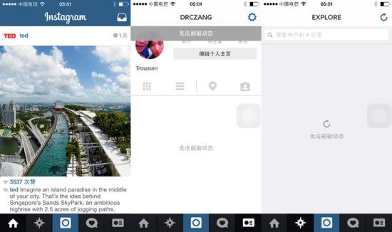 在昨天以前,Instagram還是國外主流社交網絡中少見的、可以在中國大陸自由訪問的移動App。不過在7月份,這款Facebook旗下的社交App已經開始從國內主要的Android應用市場下架,究竟是市場競爭還是政策原因還不得而知。在那之后的三個月里,Instagram的訪問沒有受到影響,蘋果App Store至今仍然提供該App的下載。