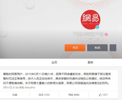 網易回應服務器癱瘓:骨干網絡受攻擊正搶修
