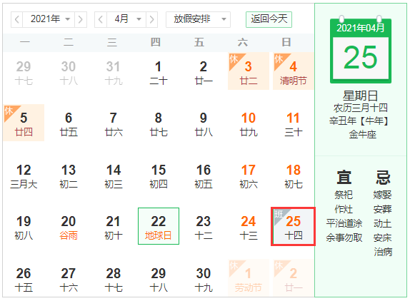 2021年5月1日(星期六)至2021年5月5日(星期三)放假,共5天;
